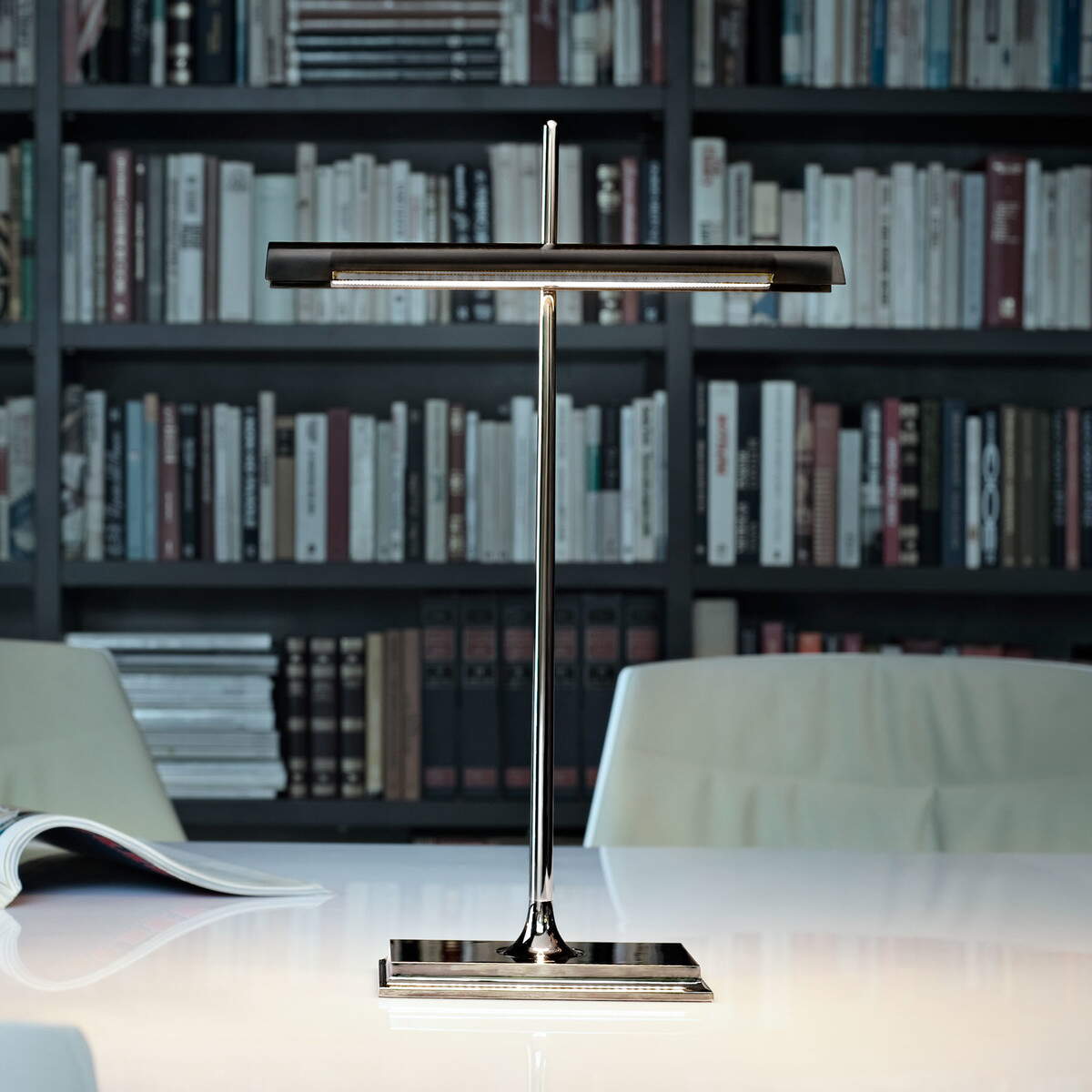Stona lampa daje direktnu svetlost na povrsinu. Aluminijumska konstrukcija, sa spoljnim transparentnim metakrilat difuzorom. Optički dimabilni prekidač na bazi sa tehnologijom " soft touch " . USB priključak na poleđini baze omogućava da napunite najčešće pametne telefone i tablete (mak 1.5A) . Adapter za utikač konektor sa izmenljivim priključcima. Kabl je dugačak 2,5 metra