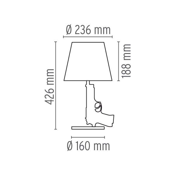 Politički angažovan dizajn : Filip Starcks GUN. Namera je prilično jednostavna: Stark želi da iskoristi svoje neobične i provokativne pištolj lampe da skrene pažnju na izvoz oružja vlada širom sveta. Beretta Noćni pištolj stoga se zalaže za odgovornost Evrope . Zlatno telo lampe upadljivo predstavlja zlosretne veze između rata i profita . Flos donira procenat od profita iz ovog opsega na Freres des Hommes Europe. Noćna lampa Guns je napravljena od ZAMAC sa 18 karata pozlatom završnom obradom. Mat crni difuzor je napravljen od papira, štampan zlatno iznutra.