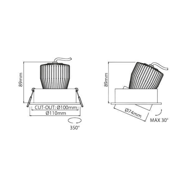 Koristi integrisani led 12,4W 1280lm 3000K. Trafo je potrebno poručiti posebno. Dubina ugradnje 100mm.